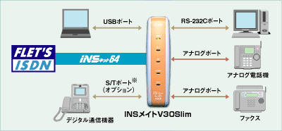 INSメイトV30S/Tユニット(オプション)を装着することによりDSUを切り離すことができます。 |