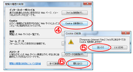 ※Internet Explorer6の場合は、「Cookieの削除」を選択し、Dへ。
