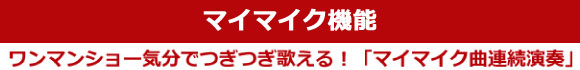 マイマイクとはキー、テンポ、エコー、マイク音量、伴奏音量、背景画のパターン等を自分好みにアレンジして保存できる機能。自分の歌いやすい設定になっているので、家族や友人の前で連続して得意曲を披露したり、練習中の複数の曲を続けて歌いたい時などに便利です。